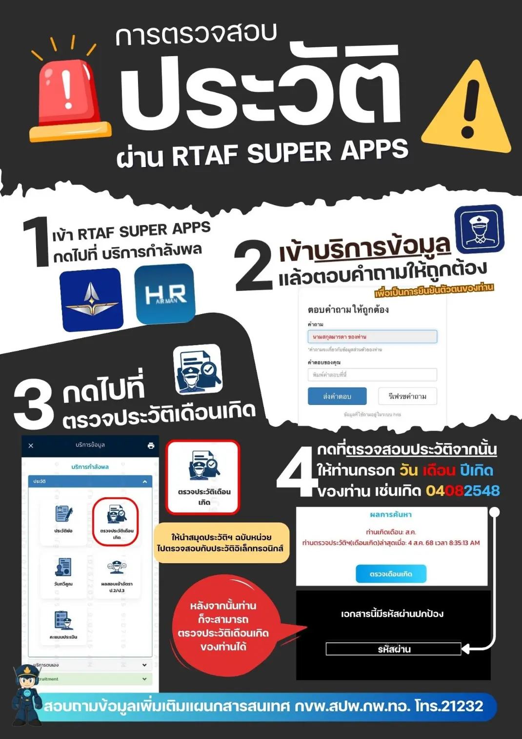 ✨สวัสดีครับ วันนี้ผู้กองเวหา 📢 ขอแนะนำการใช้งานฟีเจอร์ Airman Personal Self Service ของระบบบริการกำลังพลใน RTAF Super Apps