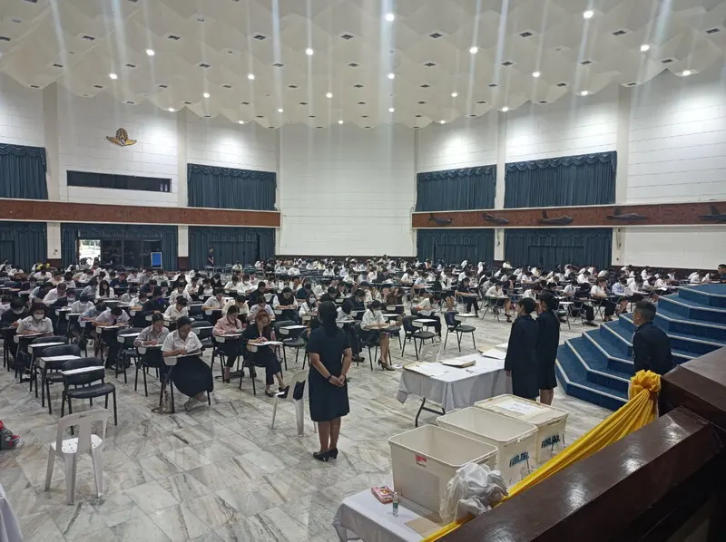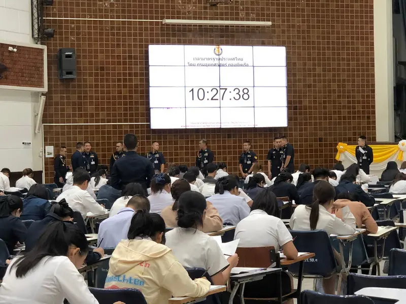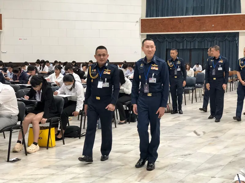 พลอากาศโท วิษณุ เนียมคำ เจ้ากรมกำลังพลทหารอากาศ พร้อมด้วยคณะผู้บังคับบัญชา ตรวจเยี่ยมการประเมินสมรรถนะ ครั้งที่ ๑ (สอบข้อเขียน) บุคคลเพื่อเลือกสรรเป็นพนักงานราชการทั่วไป สังกัดกรมกำลังพลทหารอากาศ เมื่อวันที่ ๒๒ พฤศจิกายน ๒๕๖๗ ณ อาคารรณนภากาศ อุทยานการบินกองทัพอากาศ