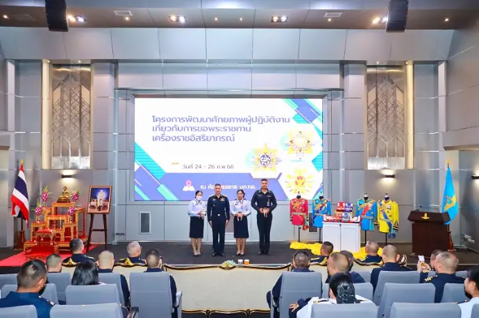 พลอากาศตรี วิโรช พยาน้อย รองเจ้ากรมกำลังพลทหารอากาศ เป็นประธานในพิธีเปิดโครงการพัฒนาศักยภาพผู้ปฏิบัติงานเกี่ยวกับการขอพระราชทานเครื่องราชอิสริยาภรณ์ โดยมีผู้เข้ารับการอบรมเป็นกำลังพล ทอ.ผู้ปฏิบัติงานเกี่ยวกับการขอพระราชทานเครื่องราชอิสริยาภรณ์ ตั้งแต่ชั้นยศจ่าอากาศตรี จนถีงชั้นยศนาวาอากาศเอก และพนักงานราชการ จำนวน ๘๐ คน เมื่อวันจันทร์ที่ ๒๔ กุมภาพันธ์ ๒๕๖๘ ณ ห้องบรรยาย กองบัญชาการกองทัพอากาศ