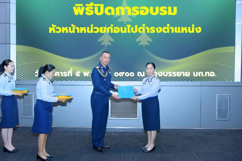 น.อ.สมชาย อ้นชนะ รองผู้อำนวยการสำนักนโยบายและบริหารกำลังพล กรมกำลังพลทหารอากาศ เป็นประธานในพิธีปิดการอบรมหัวหน้าหน่วยก่อนไปดำรงตำแหน่ง ประจำปีงบประมาณ ๒๕๖๘ โดยมีนายทหารชั้นผู้ใหญ่ของกรมกำลังพลทหารอากาศ และผู้เข้ารับการอบรมเข้าร่วมพิธีฯ เมื่อวันอังคารที่ ๕ พฤศจิกายน พ.ศ.๒๕๖๗ ณ ห้องบรรยายกองบัญชาการกองทัพอากาศ