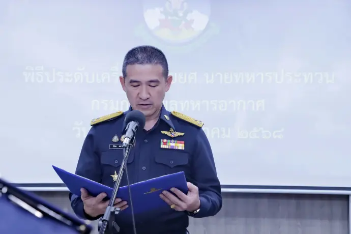 พลอากาศโท วิโรช พยาน้อย เจ้ากรมกำลังพลทหารอากาศ เป็นประธานในพิธีประดับเครื่องหมายยศนายทหารประทวน สังกัด กรมกำลังพลทหารอากาศ เมื่อวันอังคารที่ ๙ ธันวาคม ๒๕๖๘ ณ โรงเรียนกำลังพลทหารอากาศ กองการศึกษา สำนักการปกครองและพัฒนากำลังพล กรมกำลังพลทหารอากาศ