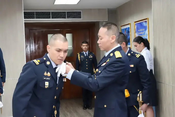 พลอากาศโท วิษณุ เนียมคำ เจ้ากรมกำลังพลทหารอากาศ เป็นประธานในพิธีประดับเครื่องหมายยศนายทหารสัญญาบัตร สังกัด กรมกำลังพลทหารอากาศ เมื่อวันศุกร์ที่ ๔ กรกฎาคม ๒๕๖๘ ณ โรงเรียนกำลังพลทหารอากาศ กองการศึกษา สำนักการปกครองและพัฒนากำลังพล กรมกำลังพลทหารอากาศ