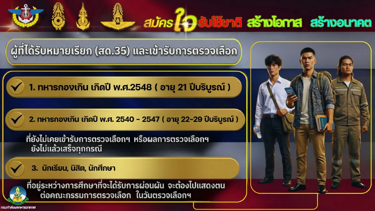 คุณสมบัติผู้ที่ต้องเข้ารับการตรวจเลือกปี ๒๕๖๙