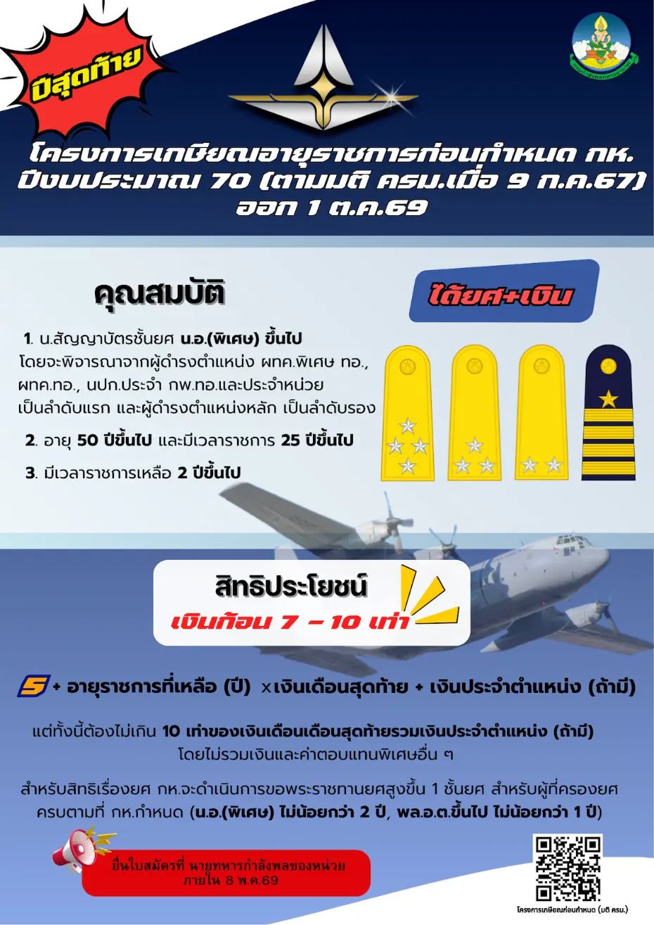 โครงการเกษียณอายุราชการก่อนกำหนดของ กห.ปีงบประมาณ ๗๐