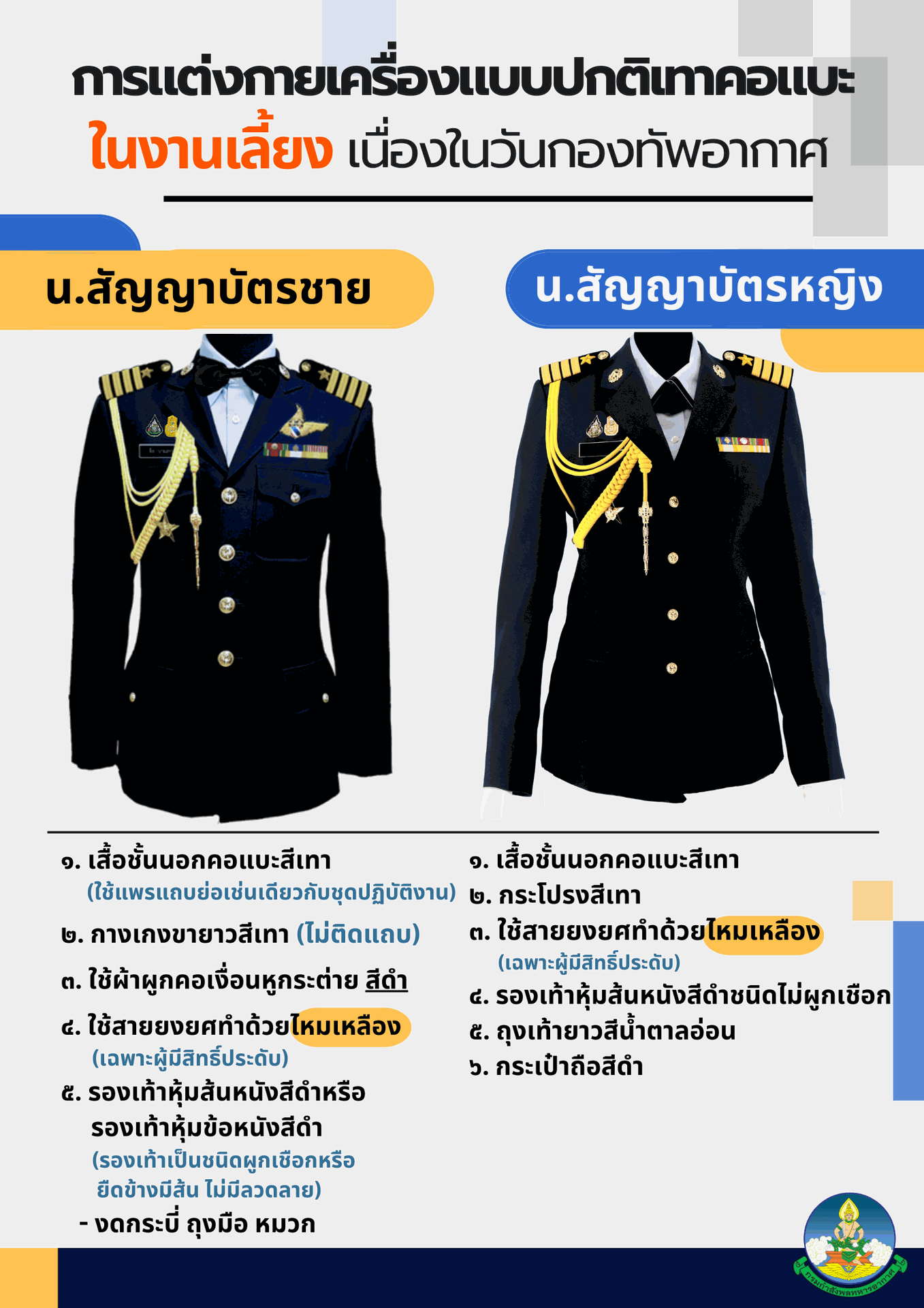 ประชาสัมพันธ์การแต่งกายในงานเลี้ยงรับรองเนื่องในวันกองทัพอากาศ