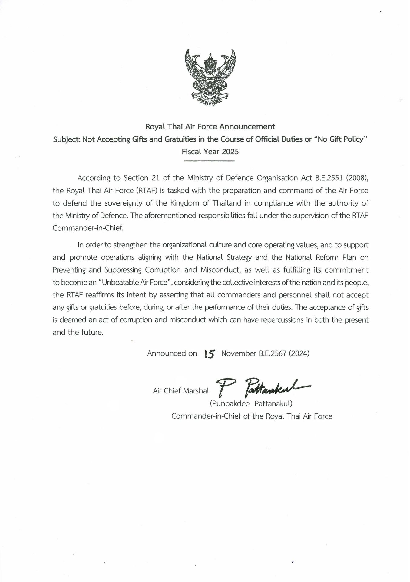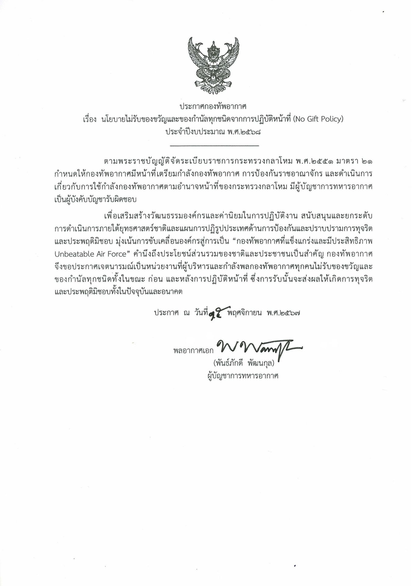 ประกาศนโยบาย No Gift Policy จากการปฏิบัติหน้าที่ ประจำปีงบประมาณ พ.ศ.๒๕๖๘